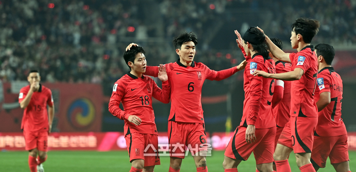 조규성이 서울월드컵경기장에서 열린 2026북중미월드컵 아시아지역 2차예선 대한민국과 싱가포르의 경기 전밤 막판 선제골을 성공시킨후 환호하고 있다. 2023.11.16. 상암 | 강영조기자 kanjo@sportsseoul.com