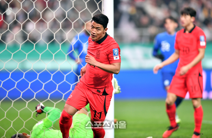 황희찬이 서울월드컵경기장에서 열린 2026북중미월드컵 아시아지역 2차예선 대한민국과 싱가포르의 경기 후반 대한민국 두번째골을 성공시킨후 기쁨을 만끽하고 있다. 2023.11.16. 상암 | 강영조기자 kanjo@sportsseoul.com