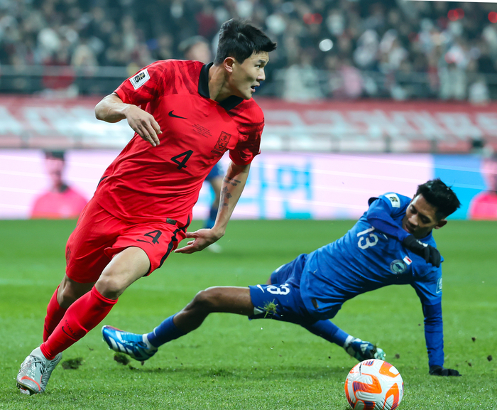 김민재는 16일 서울월드컵경기장에서 열린 2026 국제축구연맹(FIFA) 북중미 월드컵 아시아 지역 2차 예선 C조 1차전 싱가포르(FIFA 155위)와 홈경기에 중앙 수비수로 선발 출격해 풀타임을 뛰며 팀의 5-0 대승을 견인했다.