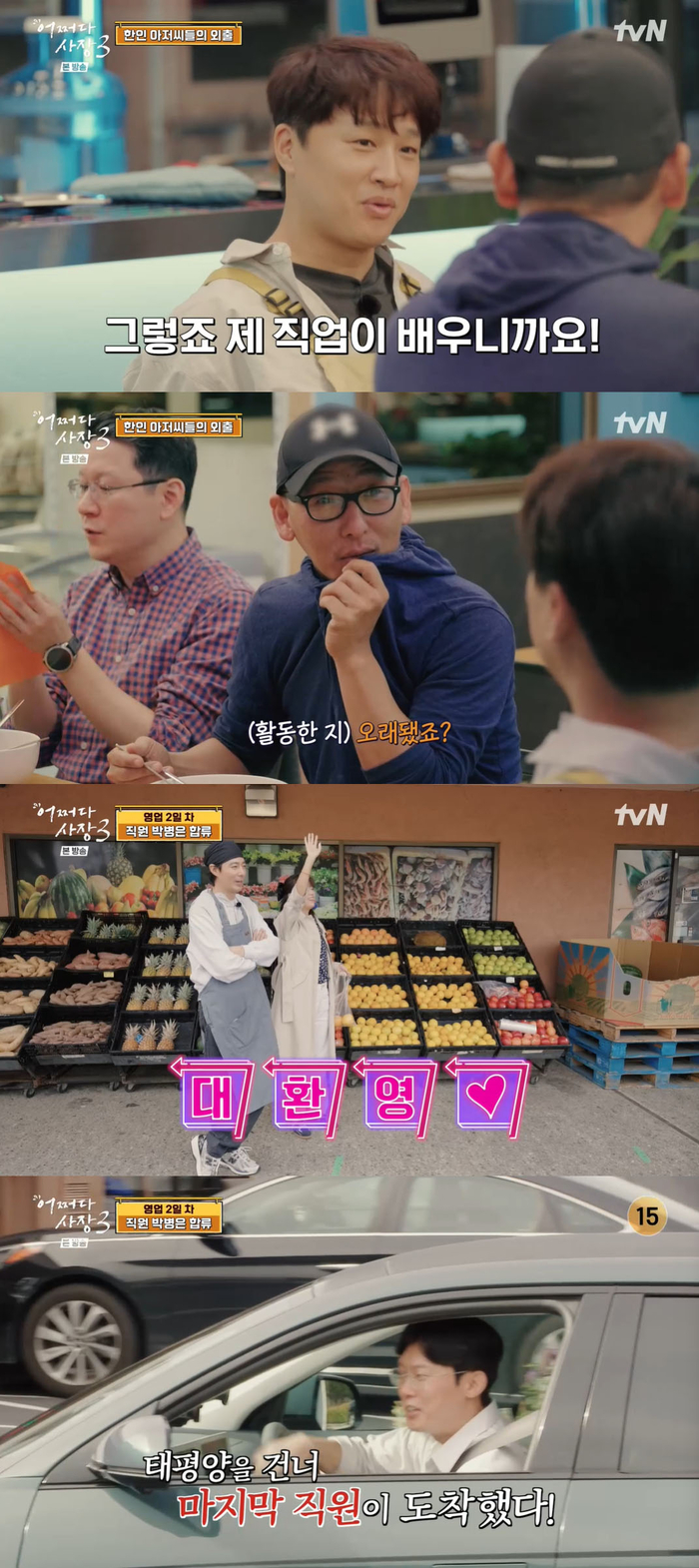 피로를 견디던 멤버들 앞에 멀리 태평양까지 경력직 아르바이트생이 날아왔다. 바로 물고기 박사 박병은. 조인성과 한효주는 ‘무빙’ 부부 모드로 박병은을 환영했다. 경력직답게 가게를 빠르게 스캔한 박병은은 “빨리 일을 달라”라며 업무에 열성을 보여 윤경호를 흐뭇하게 했다.