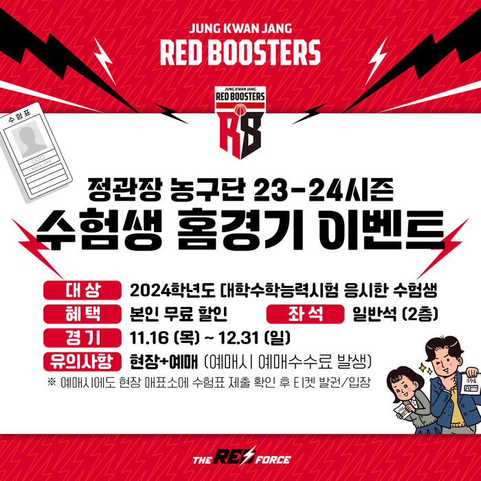 [스포츠서울 이웅희기자] 안양 정관장 레드부스터스 프로농구단은 수험생을 위한 다양한 혜택을 제공한다.