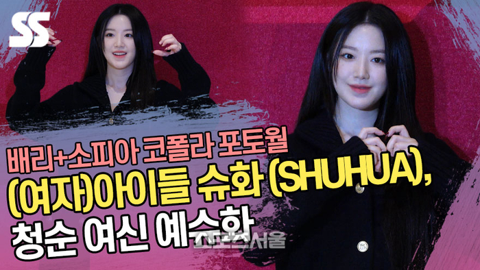 [스포츠서울ㅣ윤수경기자] 그룹 (여자)아이들 슈화가 17일 오후 서울 강남구 현대백화점 압구정에서 열린 배리(BARRIE) 포토월 행사에서 포즈를 취하고 있다.