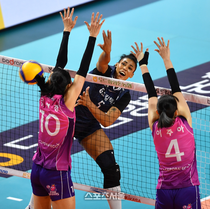 GS 실바가 17일 인천 삼산월드체육관에서 열린 2023-2024 도드람V리그 여자부 흥국생명(1위 7승1패)와 GS칼텍스(2위 6승2패) 경기에서 김연경을 따돌리며 공격을 시도하고 있다. 2023.11.17. 인천 | 강영조기자 kanjo@sportsseoul.com