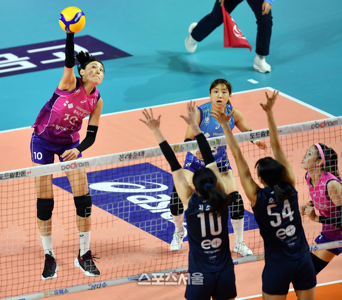 흥국 김연경이 17일 인천 삼산월드체육관에서 열린 2023-2024 도드람V리그 여자부 흥국생명(1위 7승1패)와 GS칼텍스(2위 6승2패) 경기에서 GS 이중블로킹을 피해 공격을 시도하고 있다. 2023.11.17. 인천 | 강영조기자 kanjo@sportsseoul.com