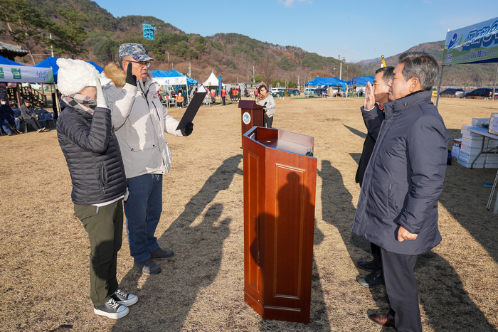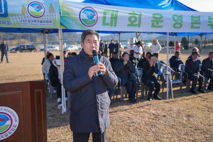 [스포츠서울ㅣ김기원기자] 제4회 양구군수기 파크골프대회 개회식이 18일 양구 한반도섬 파크골프장에서 서흥원 양구군수, 한기호 국회의원, 김선묵 군의회의장직무대행부의장 및 군의원, 임남호 양구교육장, 윤종호 군체육회장 등과 참가선수 등 300여명이 참석한 가운데 열렸다.