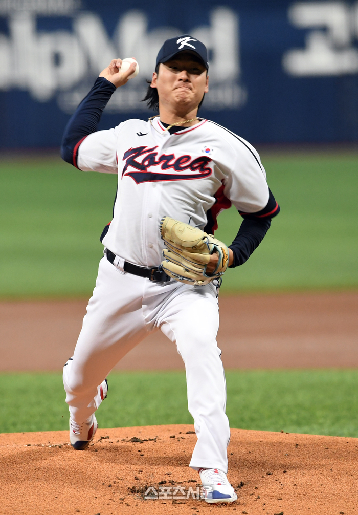 원태인이 선봉에 섰다. 5이닝 3피안타(1피홈런) 무사사구 5탈삼진 1실점의 호투를 펼쳤다. 투구수는 84개였다. 묵직한 속구가 일품이었고, 주무기 체인지업도 춤을 췄다. 대만 타자들이 적극적으로 나왔지만, 원태인이 위에 있었다.