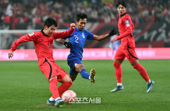 이강인은 후반전에도 창조적인 패스와 화려한 드리블을 통해 싱가포르 수비 라인을 흔들었다. 후반 4분 조규성의 크로스를 황희찬이 헤더로 연결해 추가골을 뽑아내는 장면 앞에는 이강인의 돌파가 있었다.