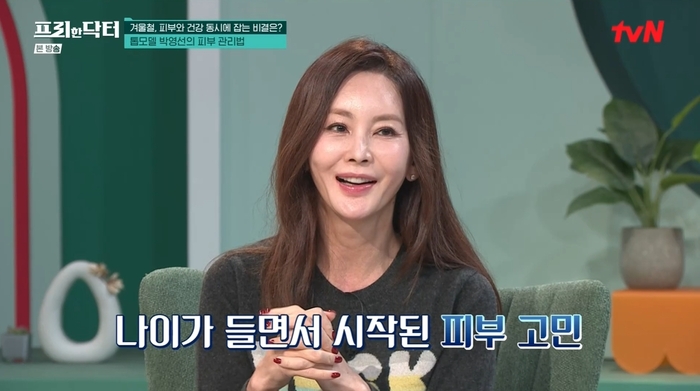 박영선은 “요즘 들어 피부가 걱정이 된다. 연예인 생활을 오래 하면서 메이크업도 두껍게 하고, 나이도 들어가니까 처지고 맑지도 않고...”라며 피부 고민을 털어놨다.