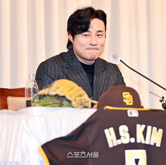 메이저리거 김하성이 20일 청담동 리베라호텔에서 기자회견을 열고 2023MLB 시즌을 마감하는 소감을 밝히며 골드글러브 유틸리티 부문 수상에 대한 이야기도 함께 전했다. 샌디에고 파드레스의 내야수로 활약한 김하성은 포지션별 최고수비수에게 수여하는 '골드글러브' 수상자로 선정되며 성공적인 올시즌을 보내며 메이저리거로서 완벽한 적응을 마쳤다. 2023.11.20. 청담동 | 강영조기자 kanjo@sportsseoul.com