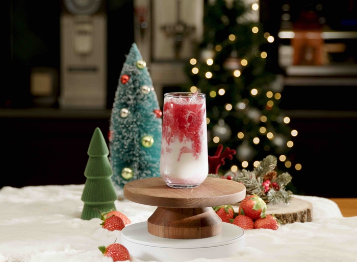 스타벅스는 흰 우유 위에 딸기 과육이 층을 이뤄 산타를 연상시키는 비주얼이 눈길을 끄는 딸기 라떼라고 전했다. 스타벅스 딸기 라떼는 2019년 첫 출시 이후 봄 스테디셀러 음료로 자리 잡아 누적 판매 530만잔을 돌파했으며, 올 봄에만 200만잔 이상 판매될 정도로 큰 인기를 얻은 바 있다.