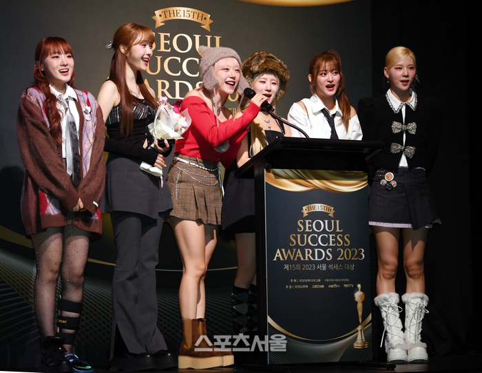 라이징스타대상을 수상한 걸그룹 시그니처이 20일 그랜드 하얏트 서울에서 열린 ‘제15회 2023 서울 석세스 대상’에서 소감을 밝히고 있다.