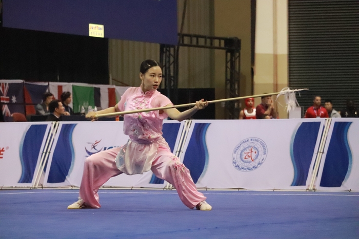여자 창술 부문에 출전한 ‘미녀검객’ 서희주(전남우슈협회)는 9.793점을 획득, 이 리(마카오·9.796점)에 0.003점 차이로 뒤지며 아쉽게 은메달을 목에 걸었다.