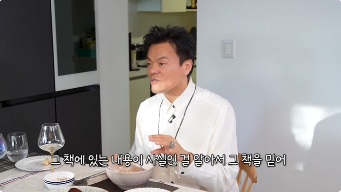 박진영은 “근데 이제 내가 살아야 하는데 마음이 텅 빈 거 같았다. 난 음악이 최종 목표라고 생각한 적은 없다. 음악은 내 직업이고 행복은 대인관계에서 온다고 생각을 한다. 살 수가 없게 된 거다. 살아야 하는데. 그때 내가 어떻게 태어나서 어디로 가는 지 끝장을 보지 않으면 안 되겠더라. 그래서 전 세계의 모든 종교를 공부한 건 아닌데 메이저 종교를 다 파헤쳤다. 그래서 2012년 10월 말에 침대에다 성경을 놓고 무릎을 꿇었다. 음악보다 열심히 공부한 게 성경이다”라고 고백했다.