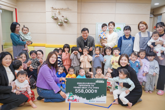 [스포츠서울ㅣ원주=김기원기자] 강릉 공립 회산한신더휴어린이집(원장 안다겸)은 자원 재활용 알뜰장터 수익금 558,000원을 22일 초록우산 강원지역본부(본부장 최기원)에 전달했다. 이번 후원금 전달식은 학부모가 함께 참여해 의미를 더했다.