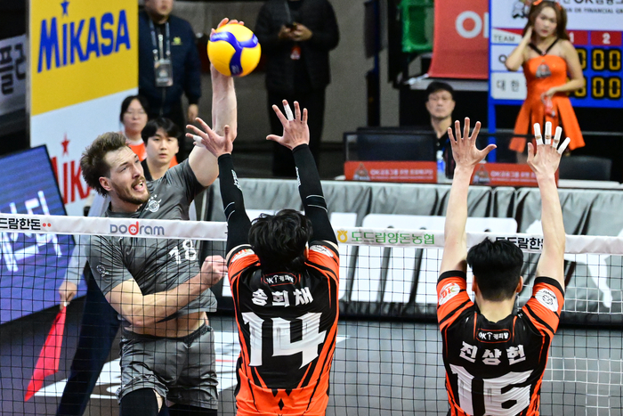 이날로 승점3을 추가한 대한항공은 선두 우리카드(승점 22·8승1패)와 승점 타이를 이뤘다. 다만 승수에서 뒤진 2위(7승3패) 유지다.