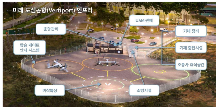 UAM은 도심상공에서 사람을 운송하는 새로운 교통수단으로 기체개발부터 인프라, 서비스 및 유지보수 등 관련사업을 포괄하는 개념으로 미래항공모빌리티(AAM:Advanced Air Mobility)로 불리기도 한다. 2040년에는 세계 에어모빌리티 시장(약 730조원)으로 성장할 것으로 전망되고 있다.
