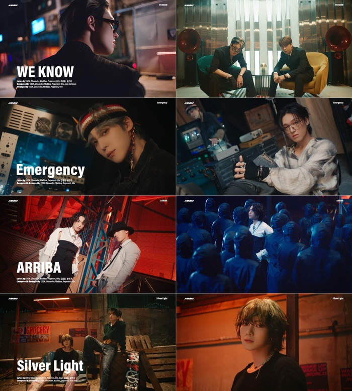 영상에서는 ‘위 노우(WE KNOW)’, ‘이머전시(Emergency)’, ‘아리바(ARRIBA)’, 마지막으로 ‘실버 라이트(Silver Light)’까지 총 4곡의 음원 일부가 흘러나와 풀버전에 대한 궁금증을 증폭시킨 것은 물론, 공개되지 않은 트랙까지 다채로운 장르의 곡을 선사할 것으로 알려져 리스너들의 기대감을 끌어올렸다.