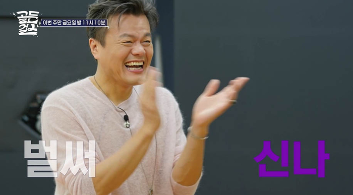 박진영은 “오늘은 이 안무에서 가장 포인트가 되고 사람들이 기대하는 인트로, 레전드 4명이 누웠다가 일어나는”이라며 박수를 치며 즐거워했다.