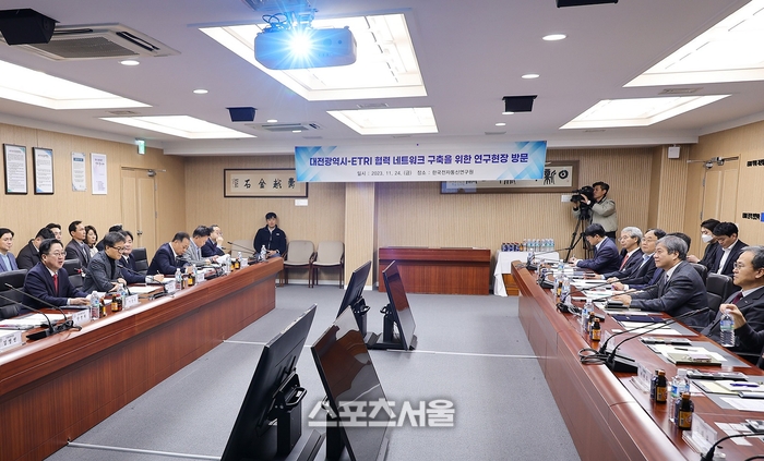 이장우 대전시장은 “에트리의 연구개발 성과가 지역으로 확산할 수 있도록 적극 협력하겠다”라며 “오늘 논의된 사항은 부서 간 협의를 통해 해결 방안을 찾아보자” 답했다.