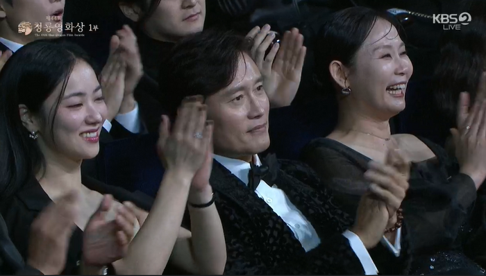시상식의 문을 여는 원밀리언의 공연이 끝난 뒤 MC 김혜수와 유연석이 등장하자 객석에 있던 동료배우들은 뜨거운 박수로 환호했다.