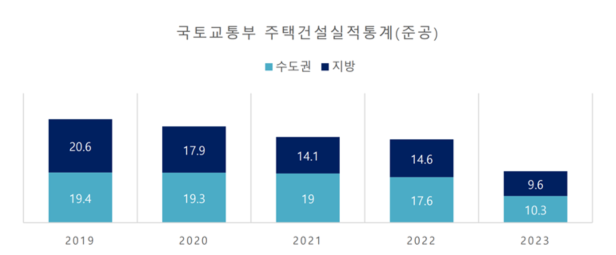 국토교통부 ‘주택건설실적통계(준공)’ 자료를 통해 2019년부터 올해(1~9월 기준)까지 전국 아파트 준공실적을 조사한 결과, 올해는 총 19만9964세대가 준공되며 5년 내 가장 낮은 모습을 보였다.