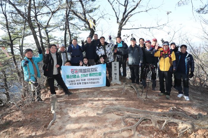 [스포츠서울ㅣ춘천=김기원기자] 김진태 강원특별자치도지사는 지난 25일(토) 민선 8기 공약 사업 중 하나인 ‘도내 등산 명소 50선’에 선정된 화천군 오봉산 ‘등반 인증 챌린지 현장’을 방문 점검했다.