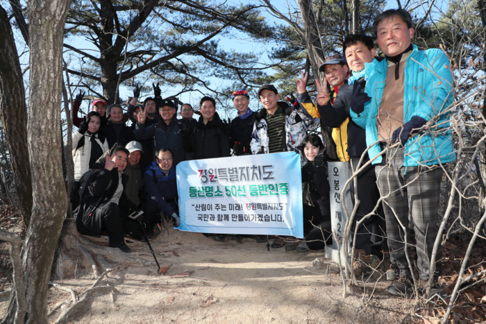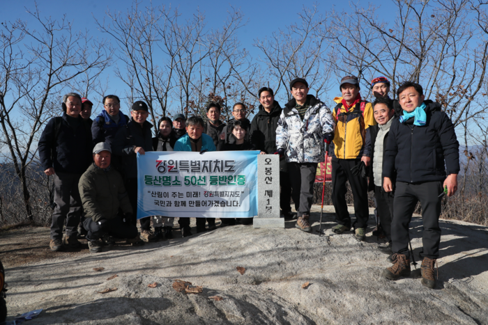 [스포츠서울ㅣ춘천=김기원기자] 김진태 강원특별자치도지사가 지난 25일, 도청 직원들과 함께 최근 선정된 도내 등산 명소 50선 중 한 곳인 춘천 오봉산에 직접 올라 등반 인증을 했다.
