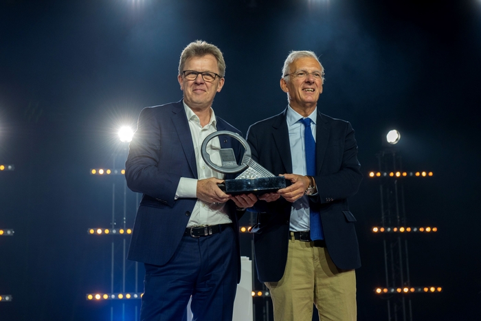 로저 알름(Roger Alm) 볼보트럭 사장이 지난 23일 프랑스 리옹의 솔루트란스 전시회에서 진행된 시상식에 참가해서 상을 수여받았다. ‘2024년 올해의 트럭’ 심사위원들은 볼보 FH일렉트릭은 뛰어난 성능, 원활한 가속 시스템과 저 소음 및 저 진동 기술 등에서 높은 점수를 획득했다고 설명했다.