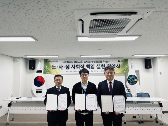 노사정 대표는 협약식을 마친 후 본청 정문에서 ‘노사관계 우수기업 인증 현판식’ 행사도 진행했다.
