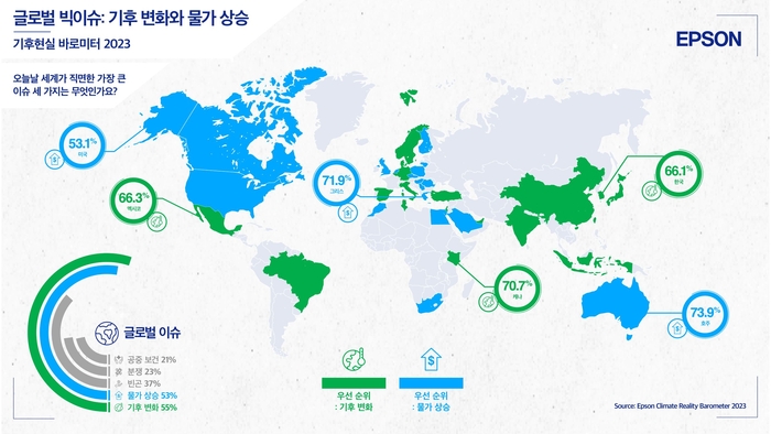 [스포츠서울 | 표권향기자] 엡손이 기후변화에 대응하는 전 세계 시민들의 인식과 행동을 조사한 ‘기후현실 바로미터 2023’ 결과를 27일 발표했다. 올해 3회째를 맞은 기후현실 바로미터 조사는 전 세계 39개국의 3만294명의 소비자를 대상으로 실시됐다.