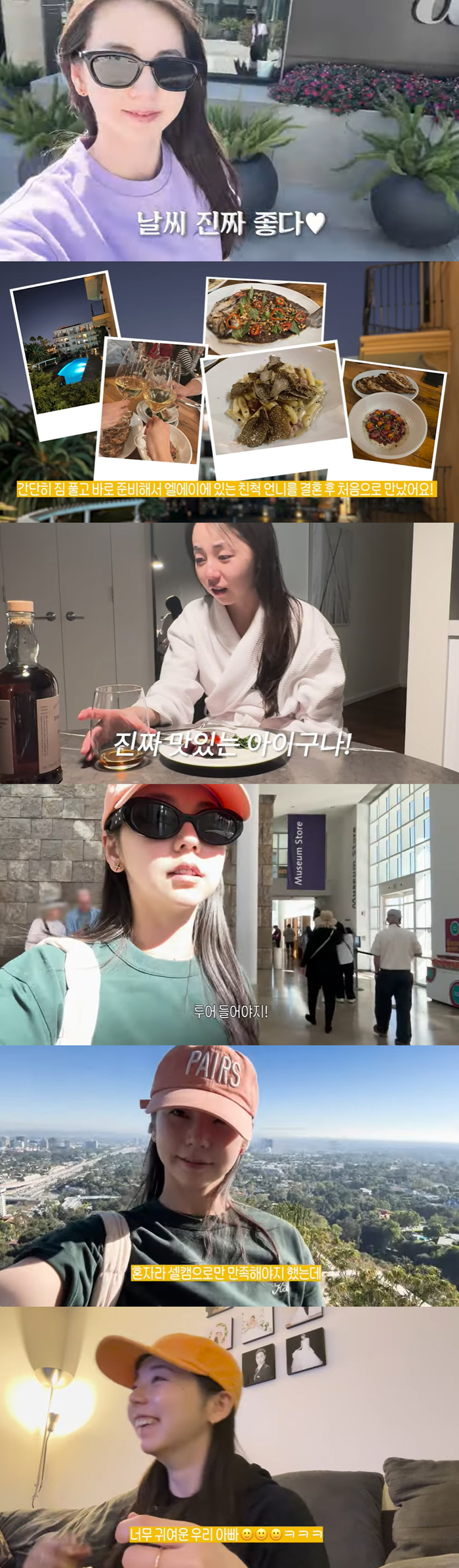 LA 인근 동네에서 갤러리와 편집샵을 부지런히 돌아본 안소희는 숙소 근처에서 핫요가까지 마치고 포장해온 음식과 위스키로 둘째날 밤을 보냈다. 그는 “요즘에 위스키가 맛있다. 다음날 숙취도 없더라”면서 만족스러워했다.