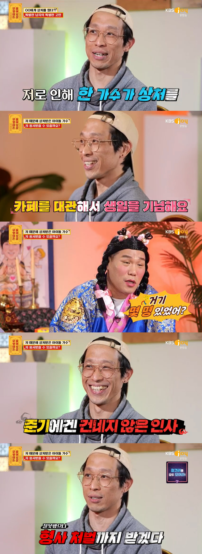 그는 “내가 가수분 소셜채널에 팔로우 신청을 했는데, 다른 팬은 해주고 나는 수락을 안해줘서 ‘너무 기분이 안 좋다’라고 팬카페에 글을 올렸다. 그랬더니 팬들이 막 공격을 하고 난리가 났다. 아차 싶어서 ‘잘못했다. 형사처벌도 받겠다’라고 글을 올렸더니, 가수의 아버지가 연락이 와서 아드님이랑 같이 만났다”라고 말했다.