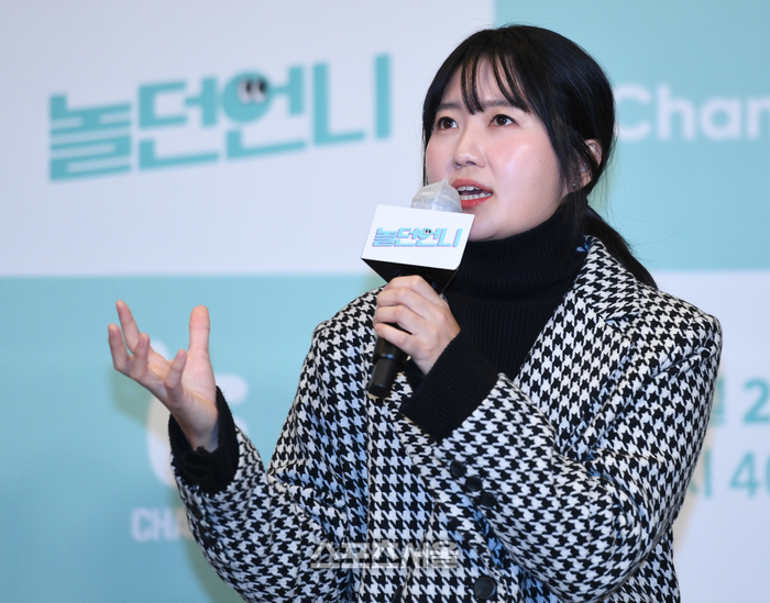 방현영PD가 28일 서울 광화문 씨네큐브에서 진행된 E채널·채널S 공동 제작 예능 '놀던 언니' 제작발표회에서 기자의 질문에 답하고 있다. 2023. 11. 28. 최승섭기자 thunder@sportsseoul.com