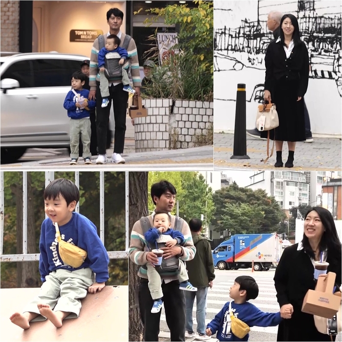 이날 이필모는 두 아들인 5살 담호, 생후 14개월 도호와 함께 아내 서수연의 퇴근길 마중에 나선다. 한 손에는 담호의 손을 잡고 아기띠로 도호를 품에 안은 채 든든한 삼부자의 위엄을 선보인다.