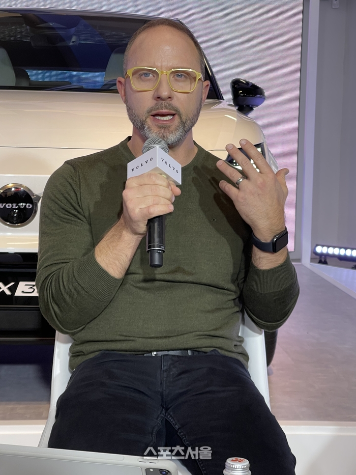 [스포츠서울 | 원성윤기자] 볼보가 유럽 시장보다 1000만원 싼 4000만원대 순수 전기차 ‘EX30’을 내놓으면서 한국 전기차 시장에 도전장을 내밀었다. 또 소나무 오일로 만든 바이오 소재인 ‘노르디코’로 시트를 만들거나 재활용 플라스틱과 알루미늄을 과감하게 차의 재료로 쓰면서 친환경적 자동차 기업으로서의 과감한 행보를 보이고 있다. 티 존 메이어 볼보 외관 디자인 총괄은 29일 서울 성동구 피치스도원에서 국내 취재진과 인터뷰를 가졌다. 다음은 그와의 일문일답.
