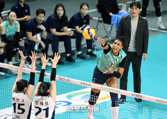 GS칼텍스 실바(오른쪽)가 29일 장충체육관에서 열린 2023-2024 V리그 여자부 IBK기업은행과 경기에서 스파이크 공격을 하고 있다. 2023. 11. 29. 박진업기자 upandup@sportsseoul.com