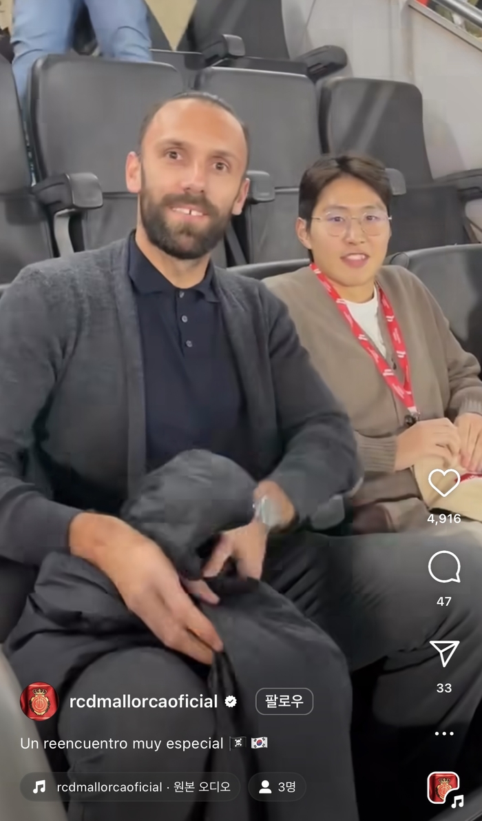 스페인 라리가의 마요르카는 30일(한국시간) 구단 공식 인스타그램을 통해 이강인의 모습을 공개했다. 마요르카는 이날 홈 구장에서 카디즈와 2023~2024 스페인 라리가 14라운드를 치렀는데 이강인은 이 경기를 보기 위해 경기장을 찾았다.