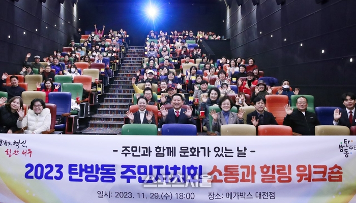 [스포츠서울 | 대전=조준영기자] 대전 서구(구청장 서철모)와 탄방동 주민자치회(회장 한정화)는 탄방동 메가박스 영화관에서 ‘주민과 함께 문화가 있는 날’ 워크숍을 추진, 이날 주민자치회 위원 및 주민 100여 명은 서철모 청장과 영화를 관람하는 시간을 가졌다.