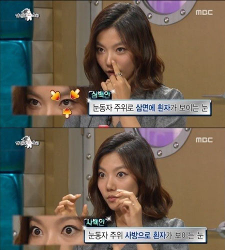 이채영은 12일 방송된 MBC '라디오스타'에 출연해 악녀를 연기하는 비결을 공개했다. 이채영은 "역할 때문에 무서운 표정을 연구했는데 삼백안과 사백안으로 나뉜다"며 "눈에 흰자가 3명으로 보이면 삼백안, 4개로 보이면 사백안"이라고 말했다.