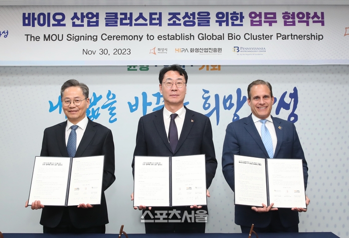 〔스포츠서울│화성=좌승훈기자〕경기 화성시는 30일 시청 중앙회의실에서 미국 펜실베니아 바이오기술센터와 ‘바이오산업 클러스터 조성을 위한 업무협약’을 체결했다.