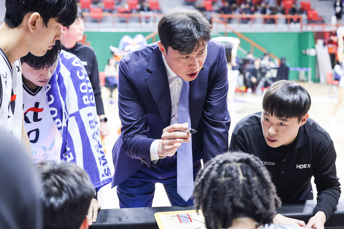 KT는 30일 부산 사직실내체육관에서 열린 2023~2024 정관장 프로농구 KCC와의 원정경기에서 85–71로 승리했다. 경기 후 KT 송영진 감독은 “타이트한 일정 속에서 선수들이 수비적인 면에서나 리바운드에서 에너지를 많이 쏟아줘 흐름이 잘 풀린 것 같다. 시작부터 가장 중요하게 여겼던 리바운드가 원동력이 됐다. 또 적재적소에 배스가 해결사 역할을 해줬다”고 총평했다.