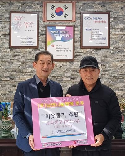 이 성금은 강원도사회복지공동모금회에 ‘남면나눔행복 모금’으로 전달 후 남면 지역사회보장협의체 심의를 거쳐 남면의 주거복지 취약 어려운 이웃을 위한 지역특화사업 중 난방비로 지원될 예정이다.