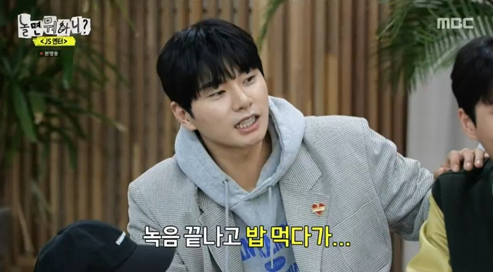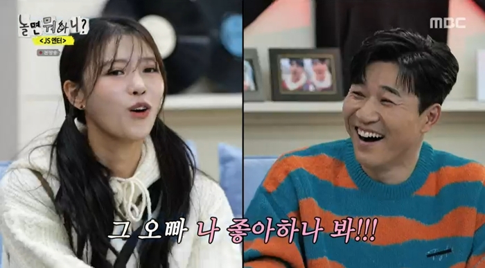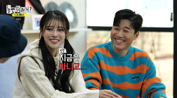 멤버들은 하하의 제안으로 자리를 바꿔 앉았다. 이미주와 김종민이 옆자리에 앉은 가운데, 유재석이 “둘이 같은 프로그램 했지 않나”라고 물었다.