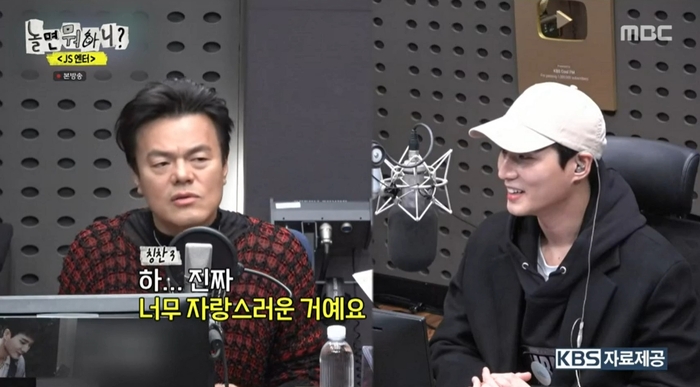 다시 영케이에게로 질문이 이어졌다. 유재석은 최근 영케이가 진행하는 라디오에 박진영이 게스트로 출연한 것을 언급하며 “JYP 형이 뿌듯해하더라”라고 말했다.