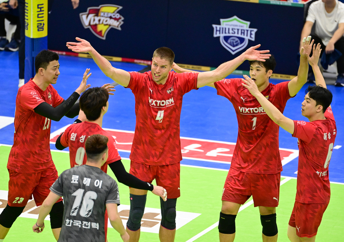 한국전력은 타이스가 공격 선봉에 섰다. 서브 3점을 포함해 18점으로 맹활약했다. 2라운드 MVP를 받은 임성진이 블로킹 4개를 묶어 14점으로 뒤를 든든하게 받쳤다.