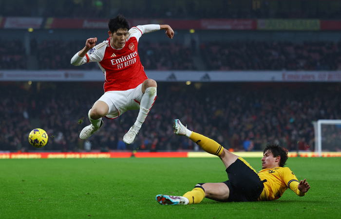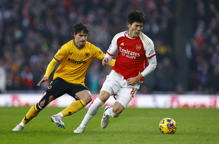 도미야스는 3일(한국시간) 런던 에미레이츠 스타디움에서 열린 2023~2024시즌 EPL 14라운드 울버햄턴과 홈경기에 오른쪽 수비수로 선발 출격, 전반 6분 부카요 사카의 선제골을 도우면서 팀의 2-1 신승을 견인했다.