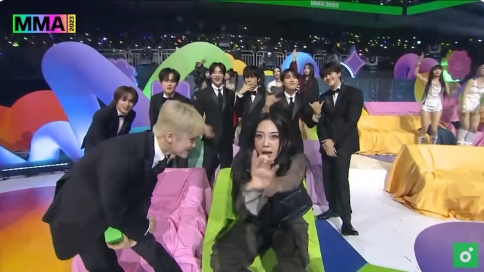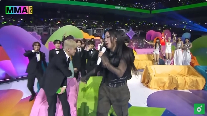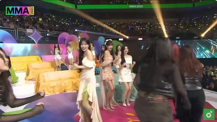 이영지의 ‘스모크’ 공연 때는 ‘올해의 아티스트’, ‘올해의 베스트송’, ‘TOP10’, ‘밀리언스 TOP10’ 그리고 ‘베스트 그룹 여자’까지 5관왕을 차지한 뉴진스가 입을 막고 감탄하는 모습이 화면에 잡히기도 했다.