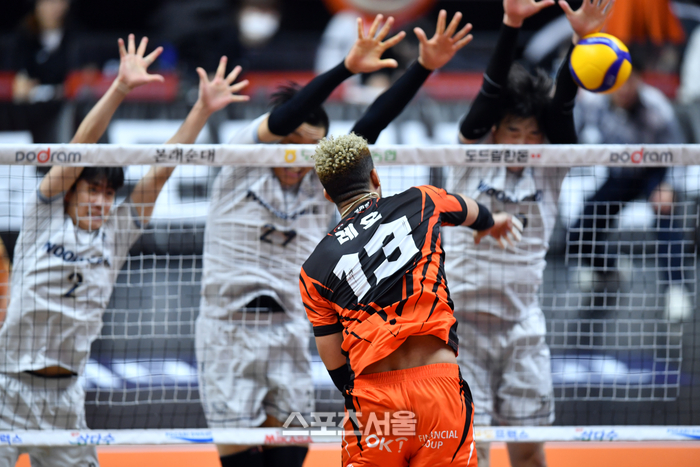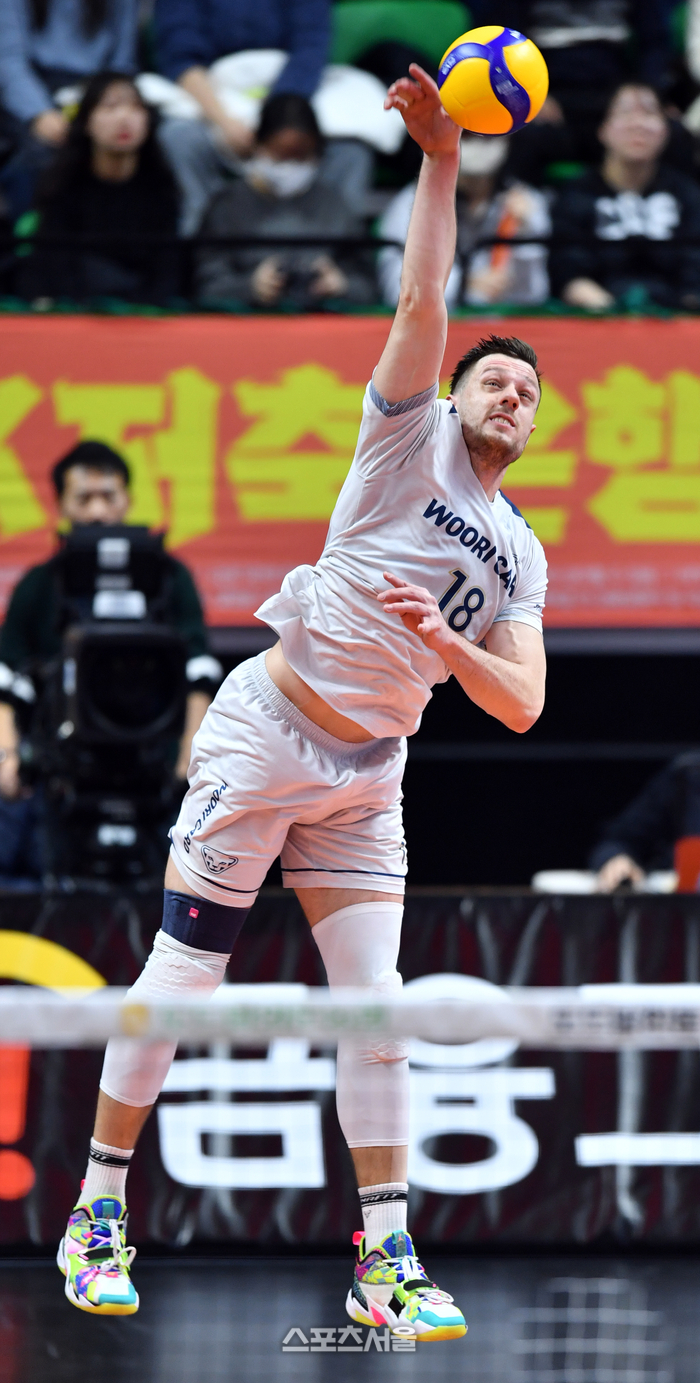 [스포츠서울 | 안산=박준범기자] 우리카드가 올 시즌 처음으로 OK금융그룹을 제압했다.