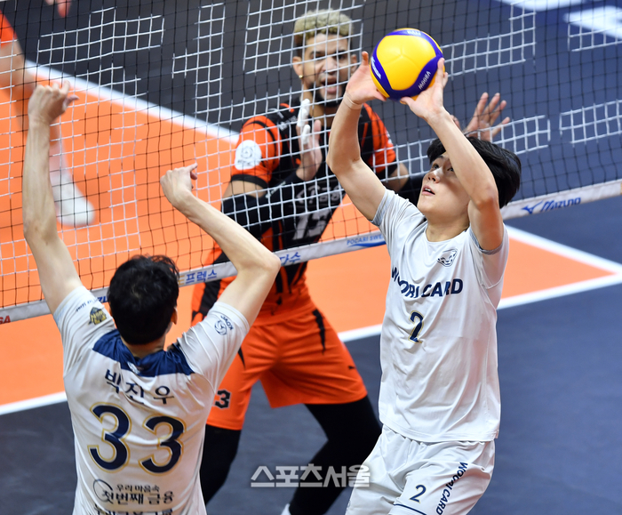 우리카드 세터 한태준은 마테이의 공격 비중을 줄이고 김지한과 한성정의 공격 빈도를 늘렸다. 특히 한성정은 3세트에서 7득점을 올려, 팀 내에서 가장 많은 득점을 책임졌다. 김지한도 5득점으로 힘을 보탰다. 특히 22-18에서 서브 득점으로 상대 흐름을 저지했다. 기세를 이어간 우리카드는 4세트에서 24-22로 승리를 눈 앞에 뒀으나 OK금융그룹 레오를 막지 못했다.