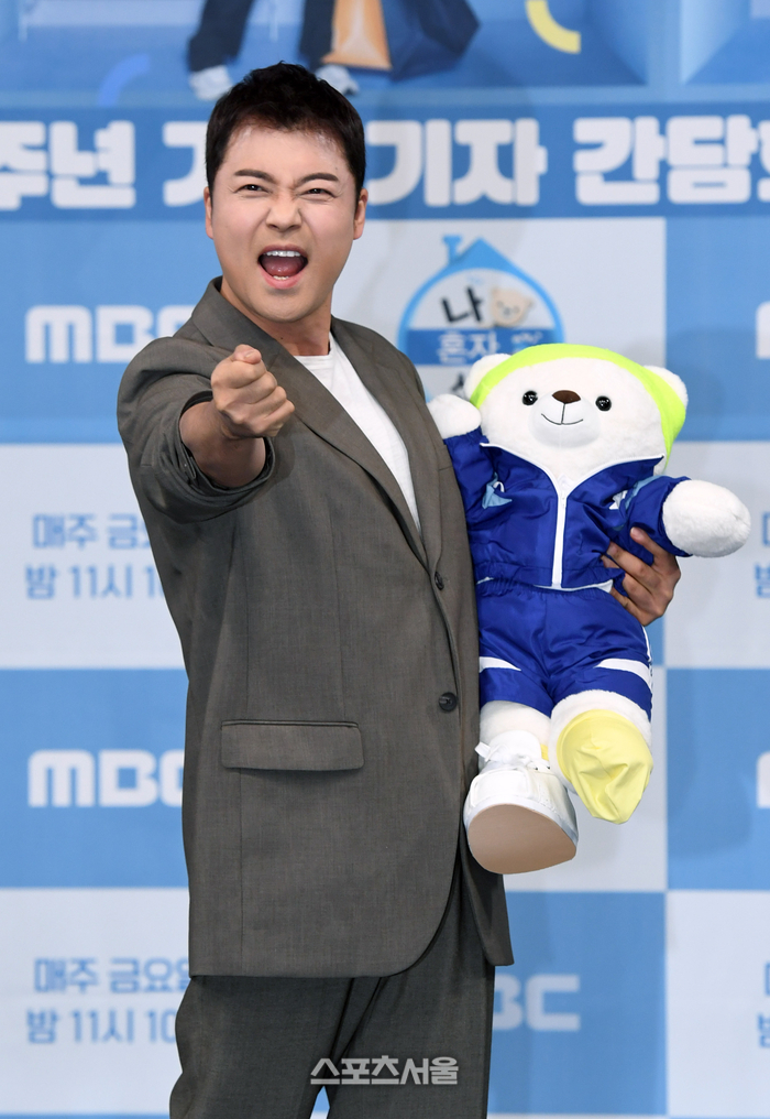 방송인 전현무가 4일 서울 마포구 상암동 MBC 골든마우스홀에서 진행된 예능프로그램 '나 혼자 산다' 10주년 기념간담회에서 취재진을 향해 포즈를 취하고 있다. 2023. 12. 4. 박진업기자 upandup@sportsseoul.com